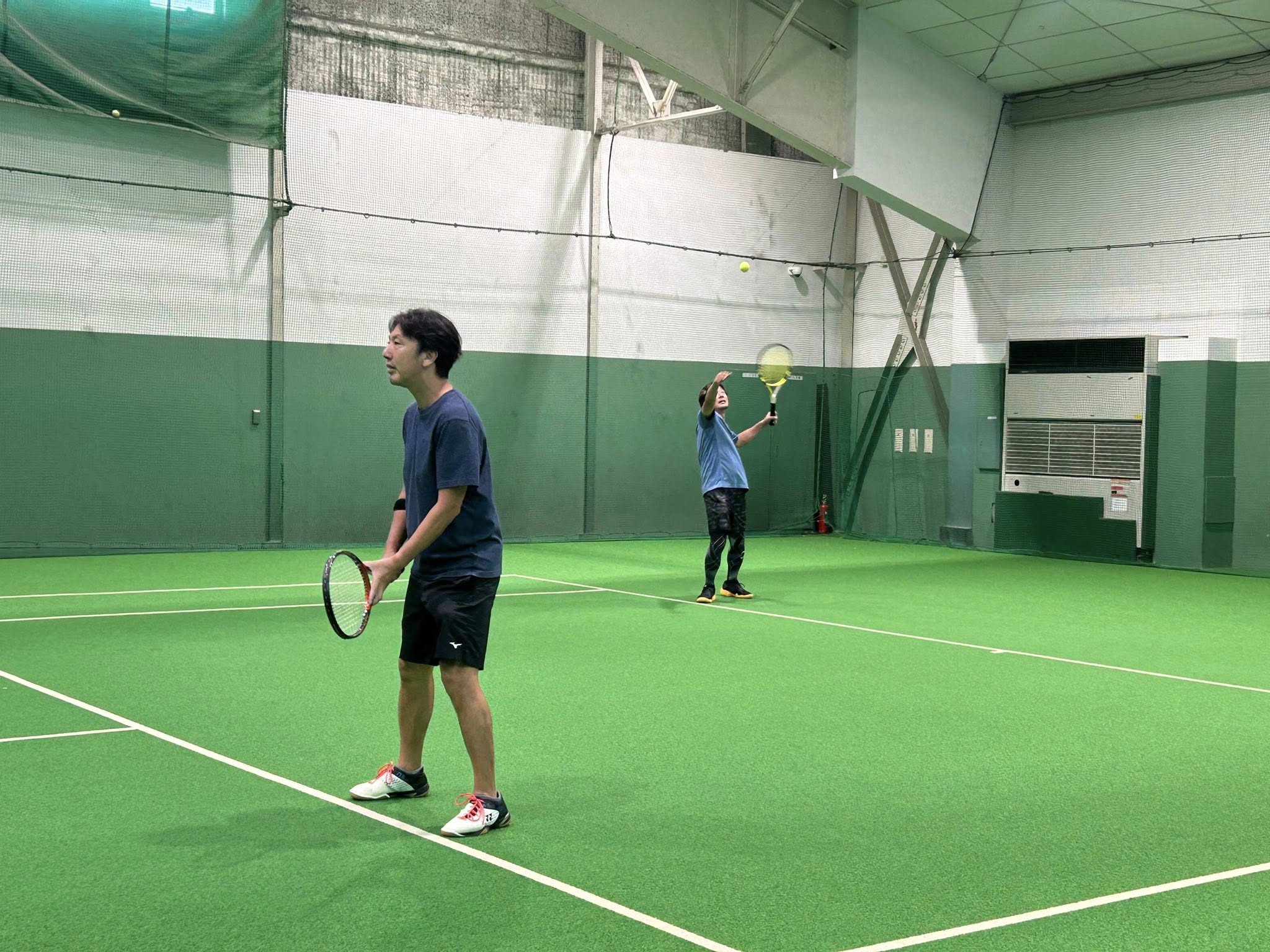 それぞれストレッチを済ませて、ウォーミングアップでサーブ練習やラリーで体をならします!