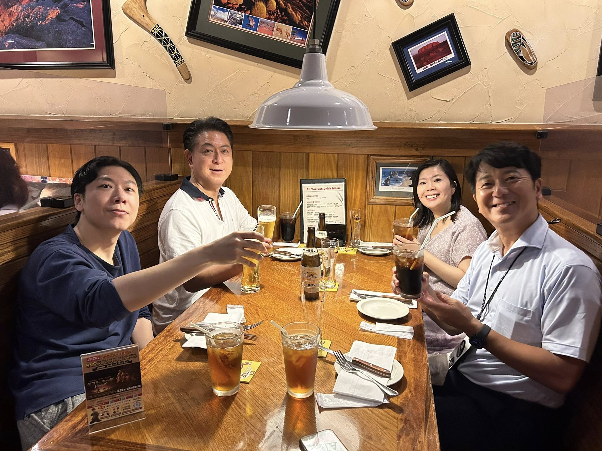 テニスの後は、お食事会場の「アウトバックステーキハウス品川高輪店」へ移動