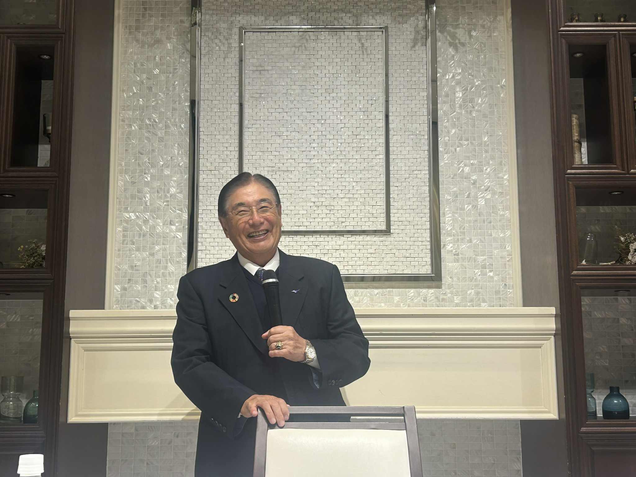 美津濃(ミズノ)株式会社へご入職後、1988 年より代表取締役社⾧、2006 年より代表取締役会⾧へご就任されました。2011 年にご退任され、2013 年まで東京 2020 オリンピック・パラリンピック招致委員会の副理事⾧・専務理事として、招致活動に従事されました