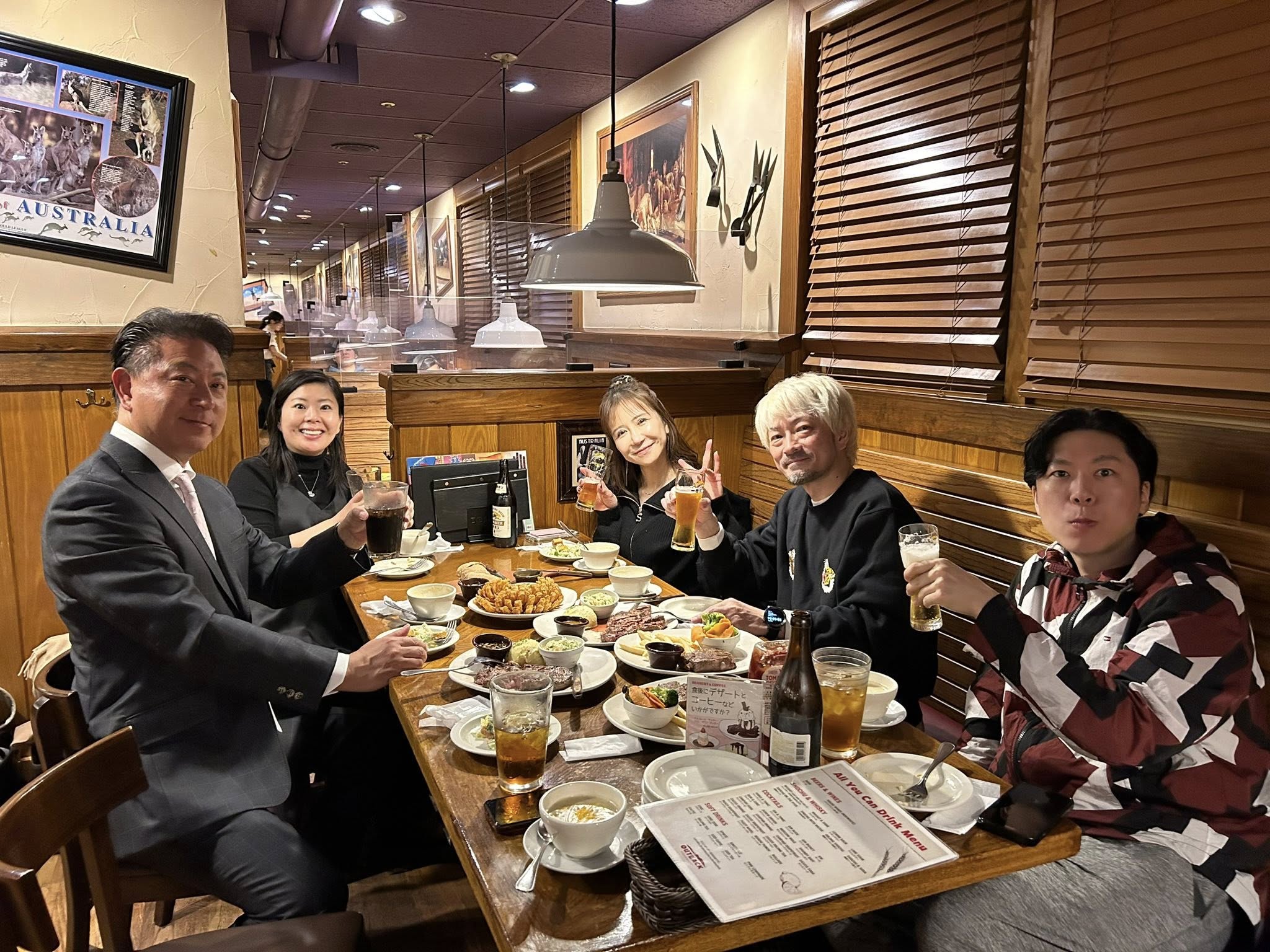 テニスの後は、お食事会場の「アウトバックステーキハウス品川高輪店」へ移動
